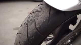 1. Поднимите заднюю часть мотоцикла, чтобы колеса не касались земли. Убедитесь, что мотоцикл находится в устойчивом положении.